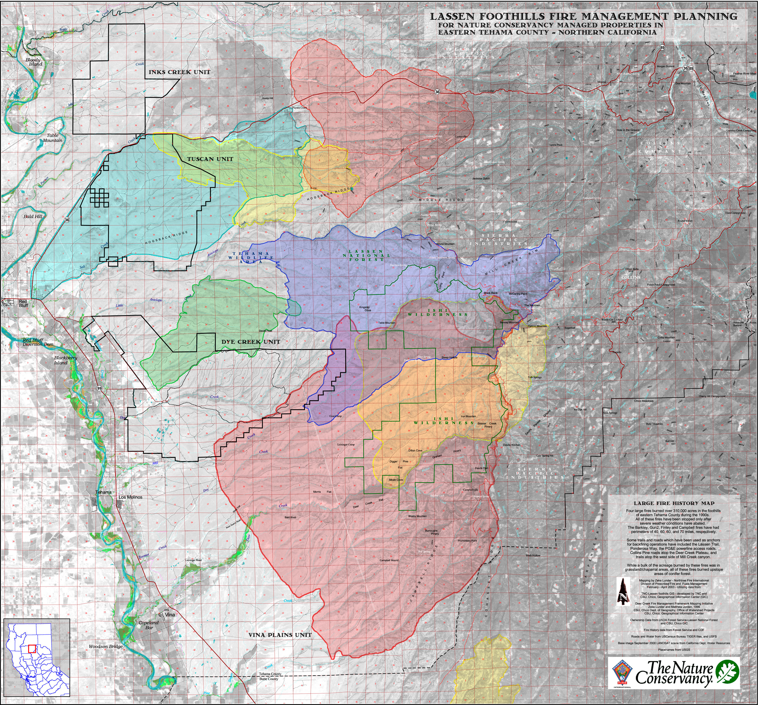 Deer Creek, and the Ishi Wilderness in particular are real wildfire country, with a history of frequent large fires. I wrote a wildfire management plan for Deer Creek Watershed Conservancy in 1999, and then did another project for the Nature Conservancy in 2003 where we helped them to lay out burn units and establish some objectives for using fire to manage their rangelands.