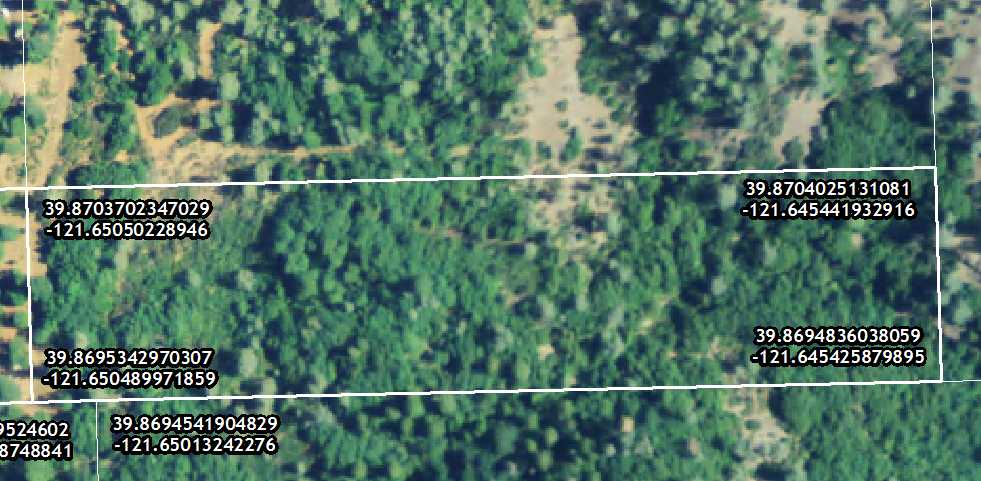 Have you ever wanted to get coordinates that you can use with a GPS to locate the corners of your property? If you send us your parcel number (APN) or address, we can send you a digital or printed map that looks like this: