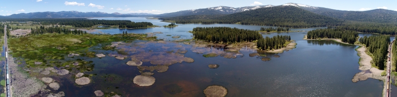 Aerial Panorama of Mountain Meadows Reservoir, near Westwood, California. Click for fullscreen image.